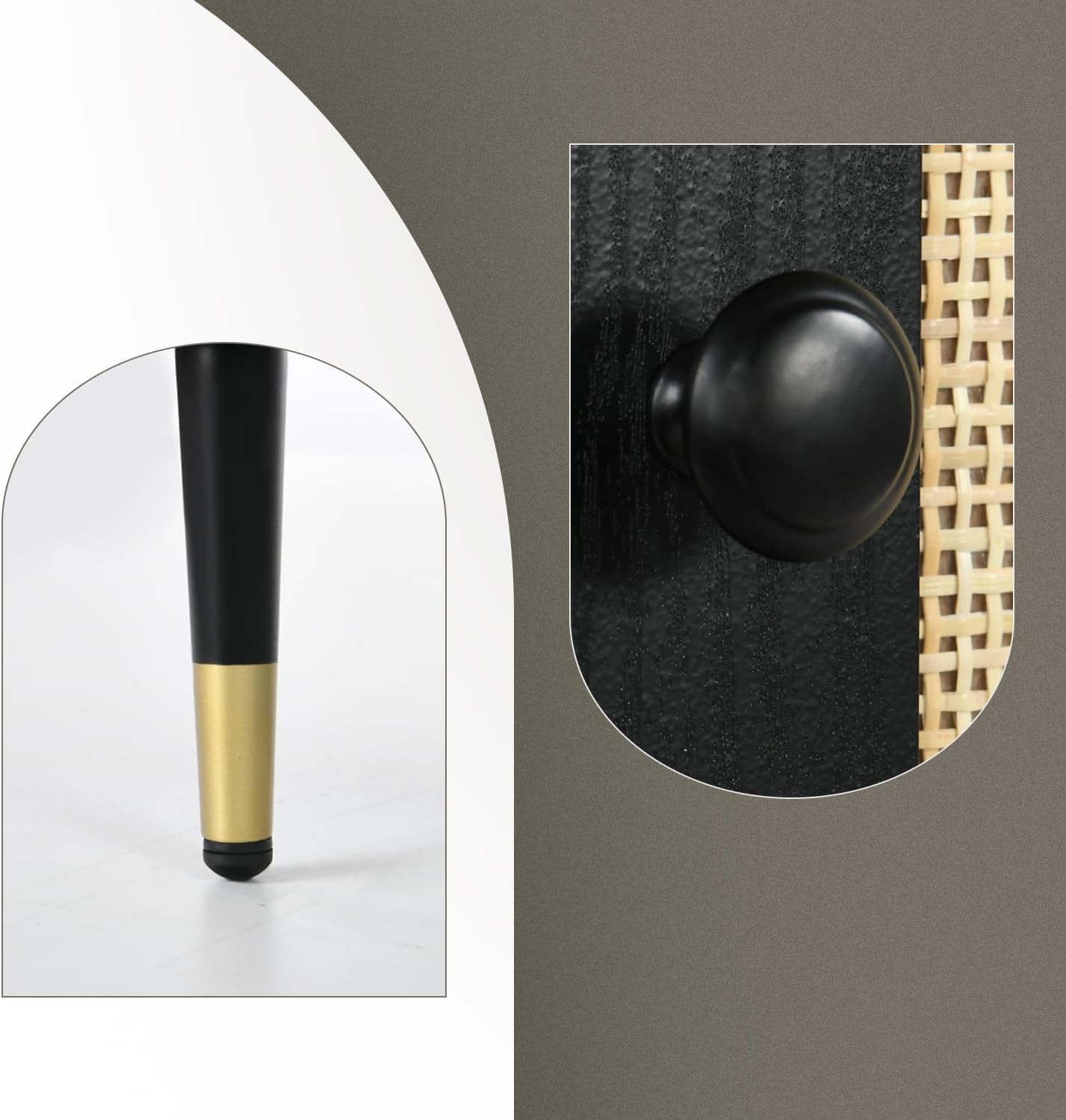 Black Rattan Buffet Cabinet, Rattan 3 Doors Buffet Cabinet with Storage, 47'' Sideboard with Adjustable Shelf for Kitchen, Living Room