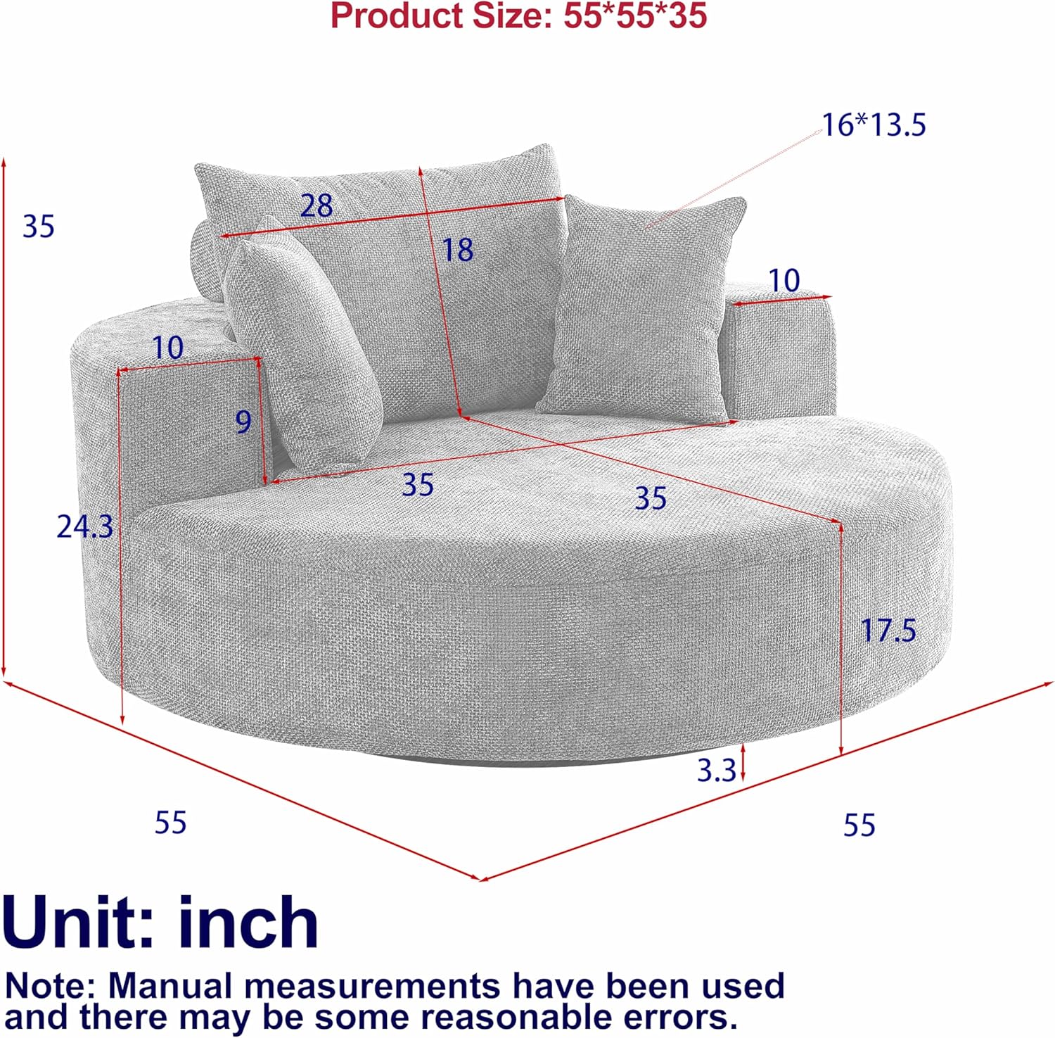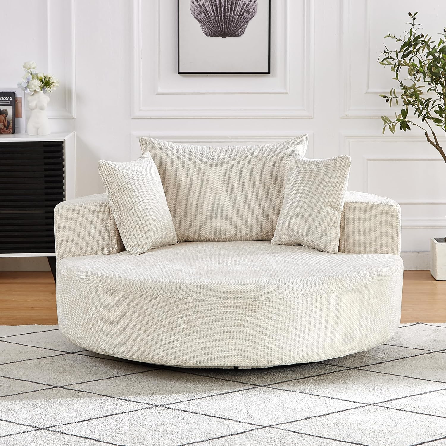 KEIKI 55" Oversized Swivel Accent Chair, Large Barrel Chairs Upholstered Round Swivel Chair, Chenille Single Sofa Armchair, Sleeper Chair for Living Room, Lounge, Beige