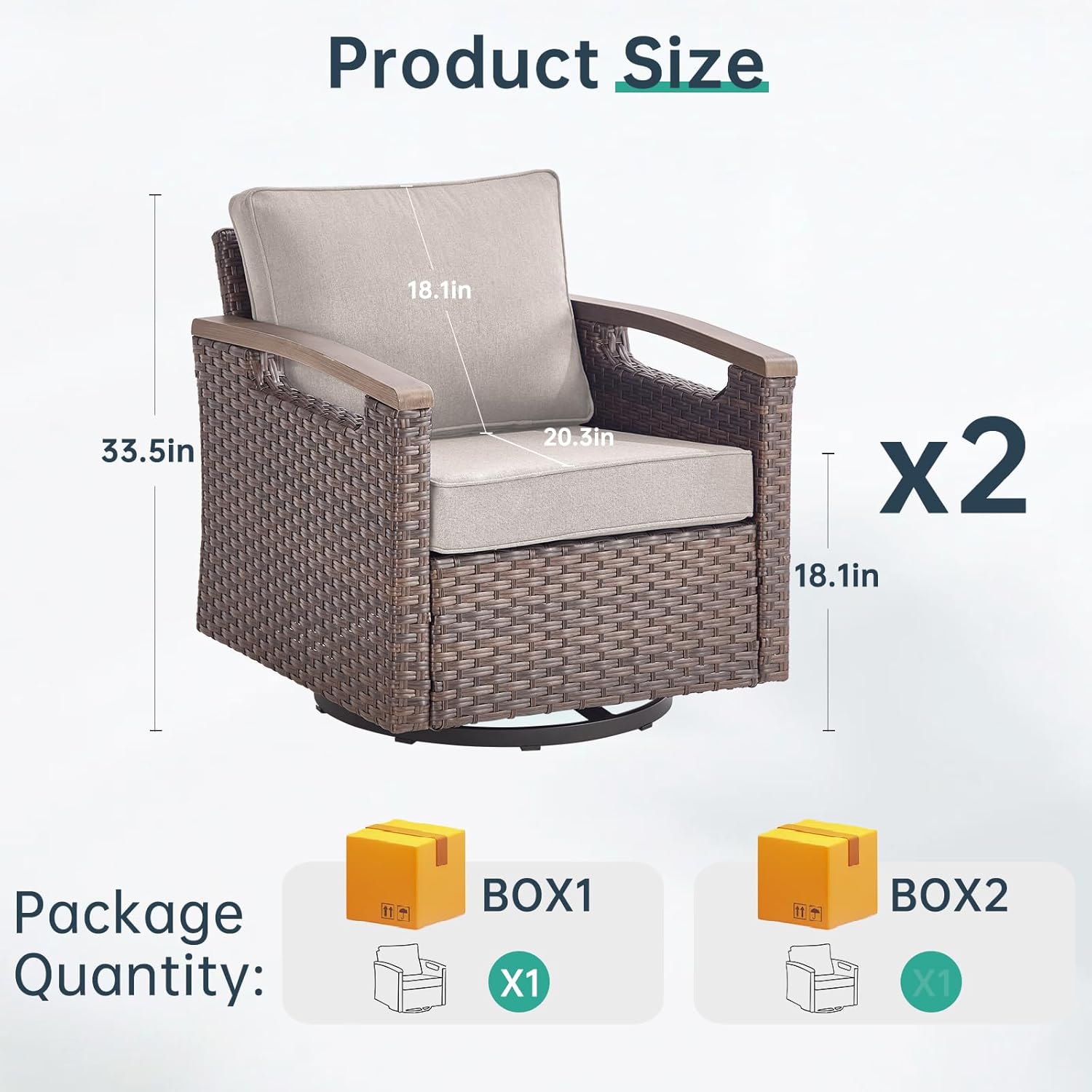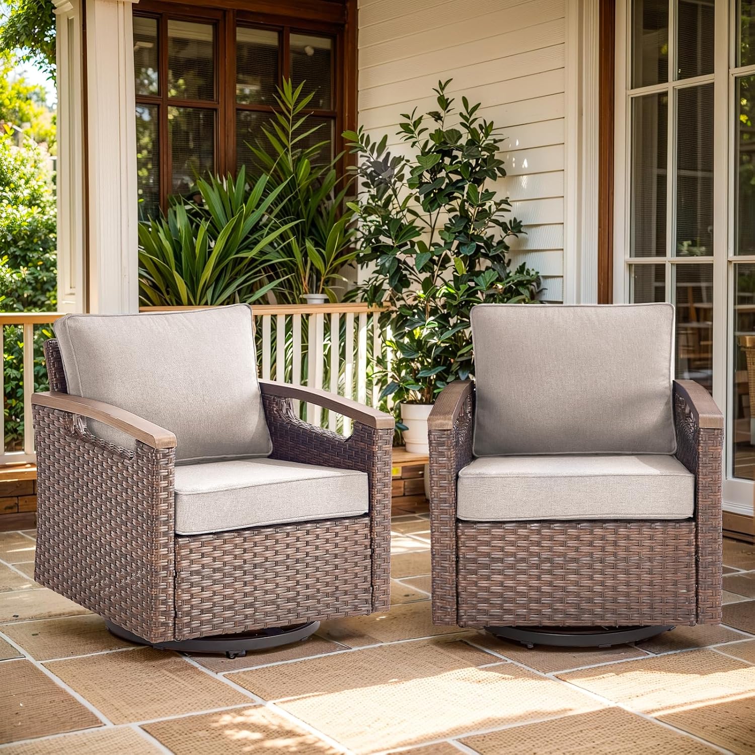 Artfurniz Luxury Outdoor Swivel Rocker Patio Chairs Set of 2 - Heavy Duty Metal Handrail All Weather Wicker Glider Chairs Set with Comfort Thick Cushion for Porch, Poolside and Deck | Beige