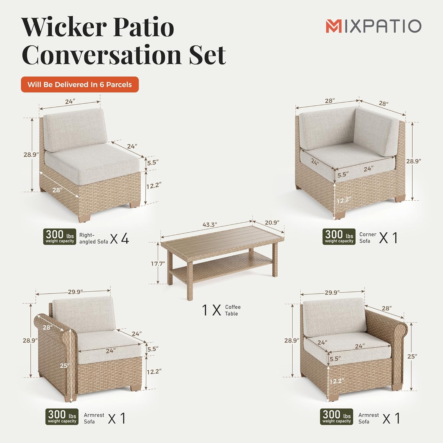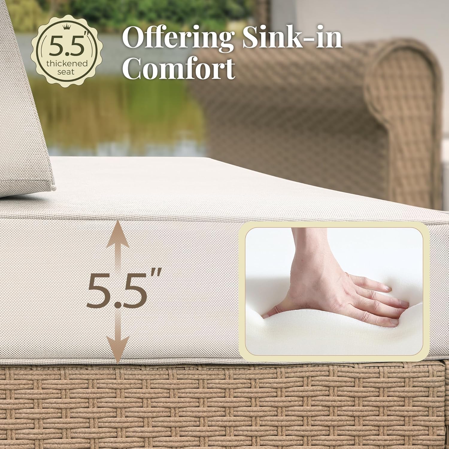 Patio Furniture Set, 8 Piece Outdoor Rattan Wicker Sectional Conversation Set with 5.5" Thick Waterproof Cushions and Coffee Table for Deck Backyard