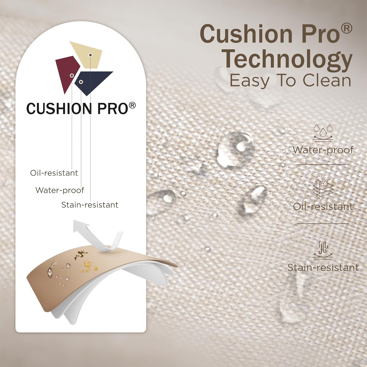 - With Seat & Back Cushion: 5.75" Thick Cushion with 230g olefin cushin-pro fabric for all weather. Water-repellency, soil-release & stain resistant. Easy to clean & Better for outdoors