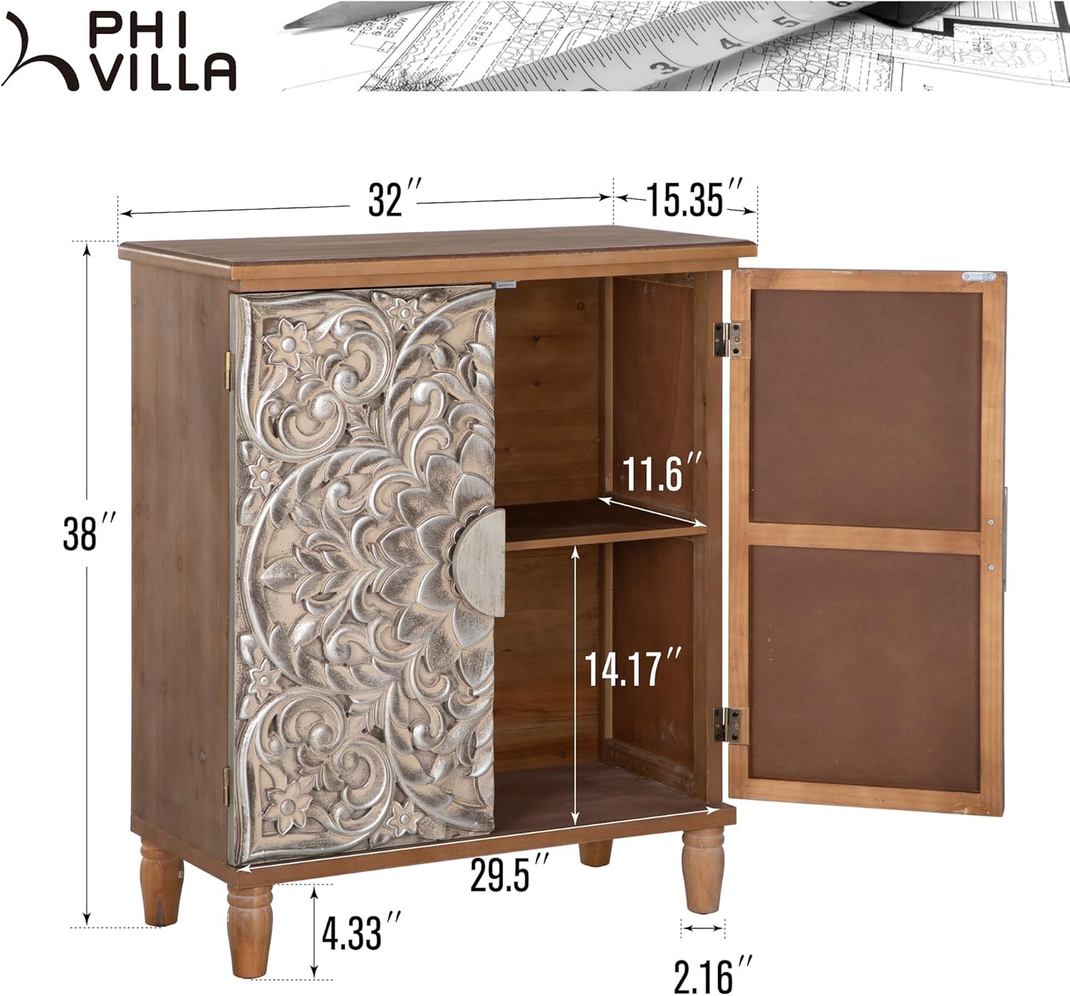PHI VILLA Accent Cabinet with Doors - Antique Storage Cabinet for Entryway Buffet Sideboard